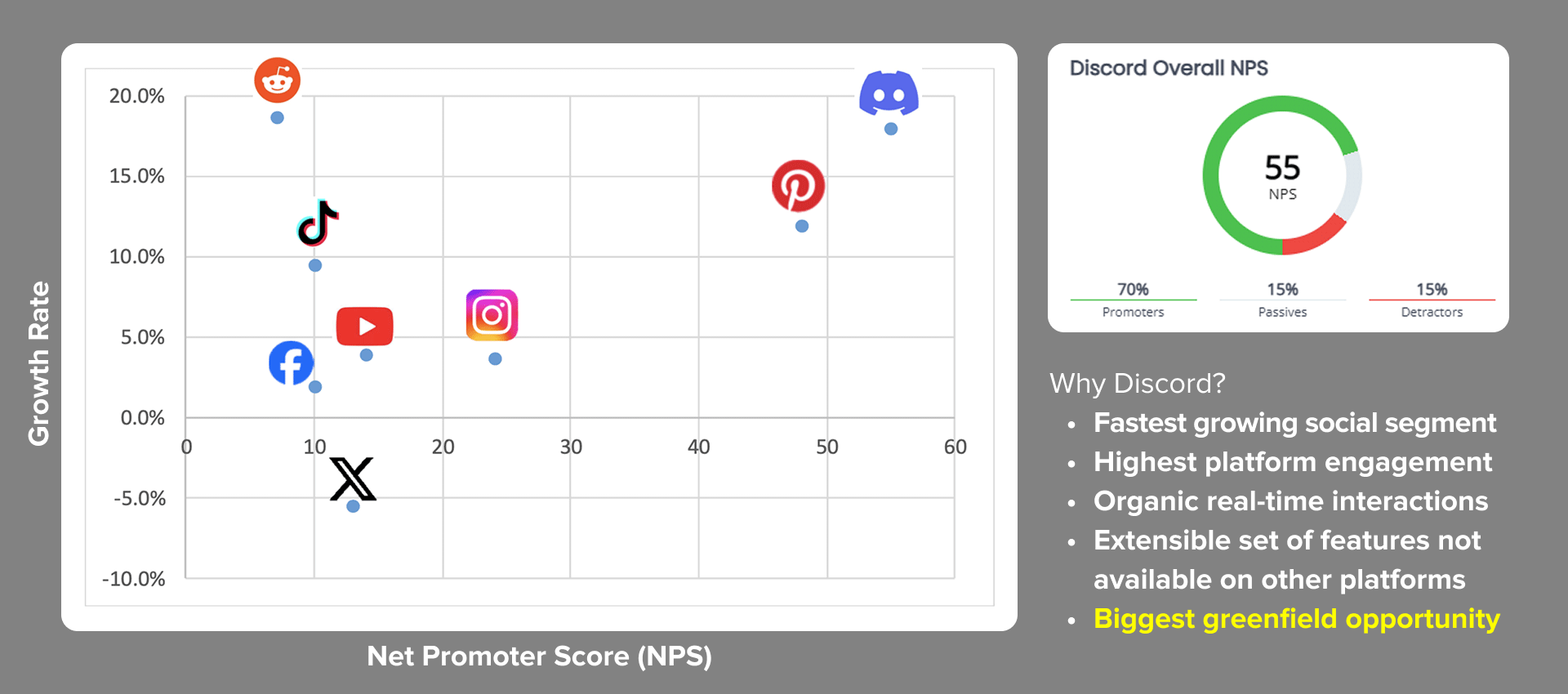 Predicts Growth – A higher NPS correlates with stronger customer retention, organic referrals, and increased revenue. Discord’s high NPS indicates a deeply engaged and loyal user base that actively promotes the platform.